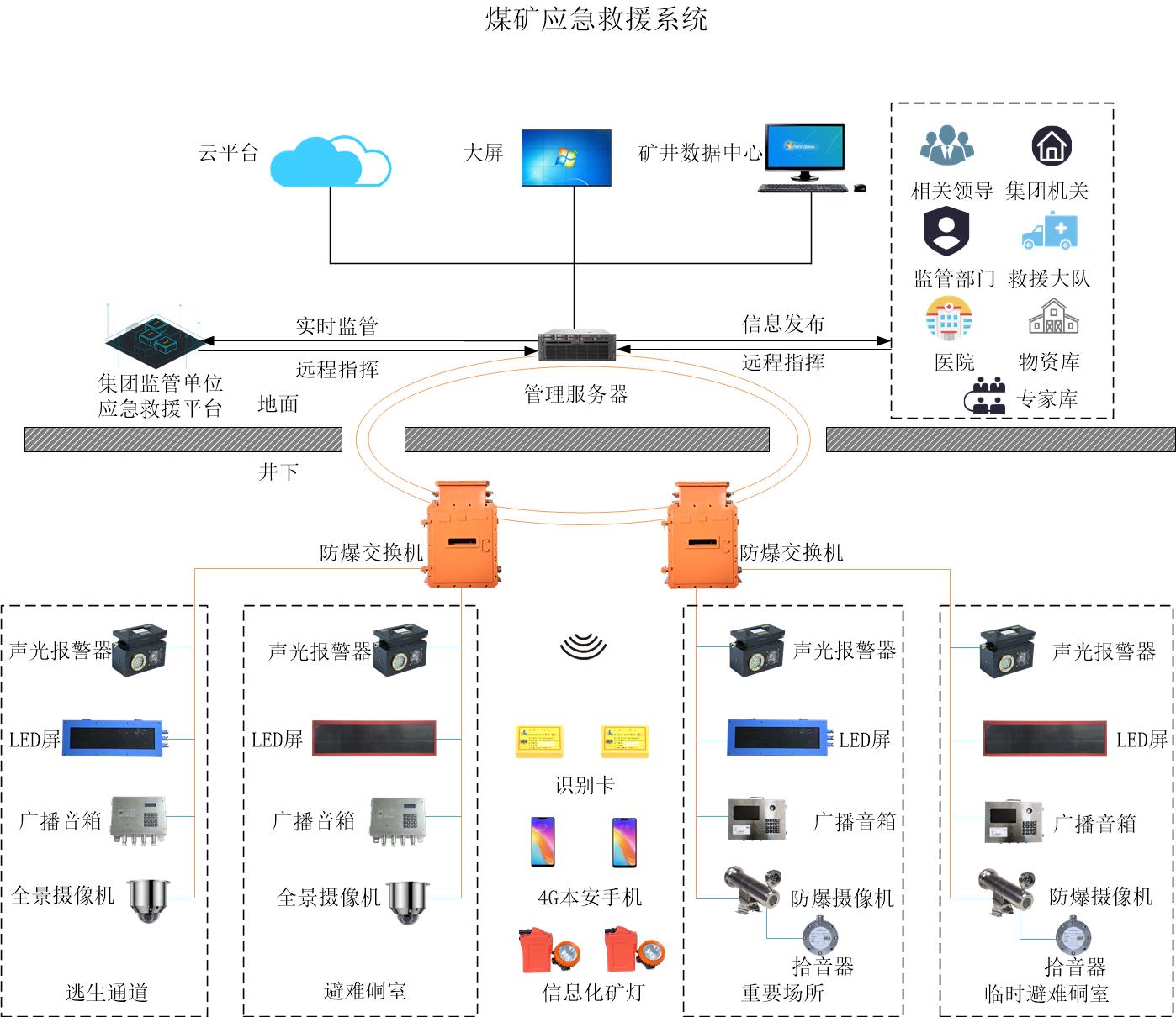 為了解決這種事故,煤礦企業選擇在井下部署應急救援系統,煤礦應急救援系統在預案管理、指揮救援、資源管理、重大危險資源和預警等方面的作用。在規范事故應急響應程序和應急處置及救援指揮工作機制,完善應急管理機構上下級,以及與相關部門之間的協作、聯動機制,切實提高事故應急響應、聯動、指揮和現場處置效能。